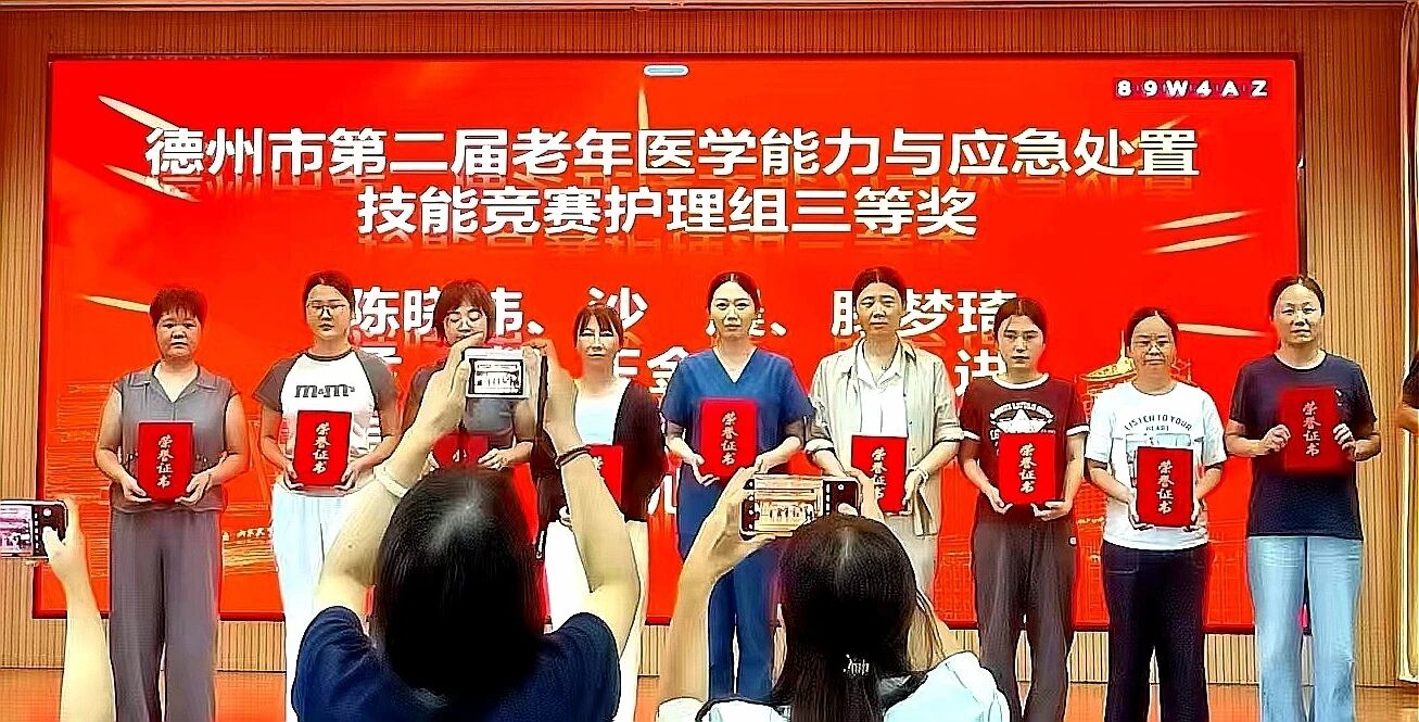 8月28日,由德州市卫生健康委员会、德州市总工会联合主办的德州市第二届老年医学能力与应急处置技能竞赛举行,16个代表队同台竞技。最终,德州市立医院代表德城区代表队获得团体三等奖。德州市立医院老年医学科王玲获得医疗组二等奖,王莹获得医疗组优秀奖,闫书静、王进获得护理组三等奖。