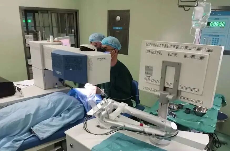 德州市立医院眼科主任赵峰为患者实施手术。