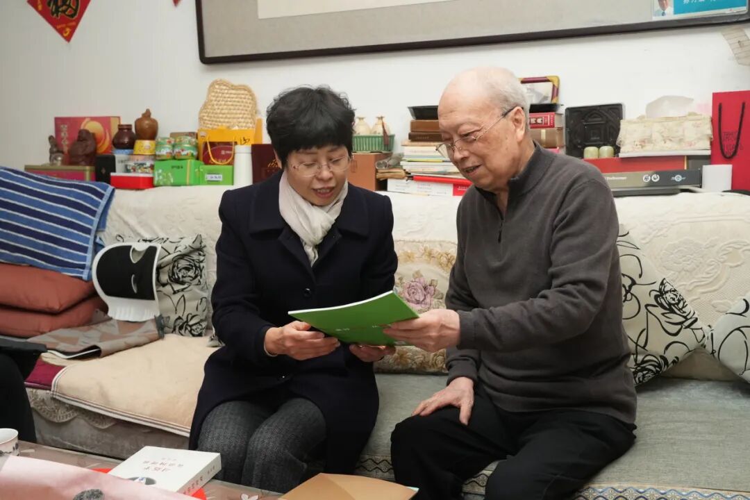 慰问组特意为老同志们带去了精心准备的慰问品:记录医院2025年发展历程与重要时刻的《院报年度合订本》,展现医院精神与文化内涵的《医院文化手册》,洋溢着喜庆祥和的春联与福字,以及供老党员学习的最新理论著作。此外,还有实用的小米、食用油、面粉等生活物资。这些慰问品既体现了医院对老同志政治上的关心、精神上的慰藉,也包含了生活上的体贴照顾。