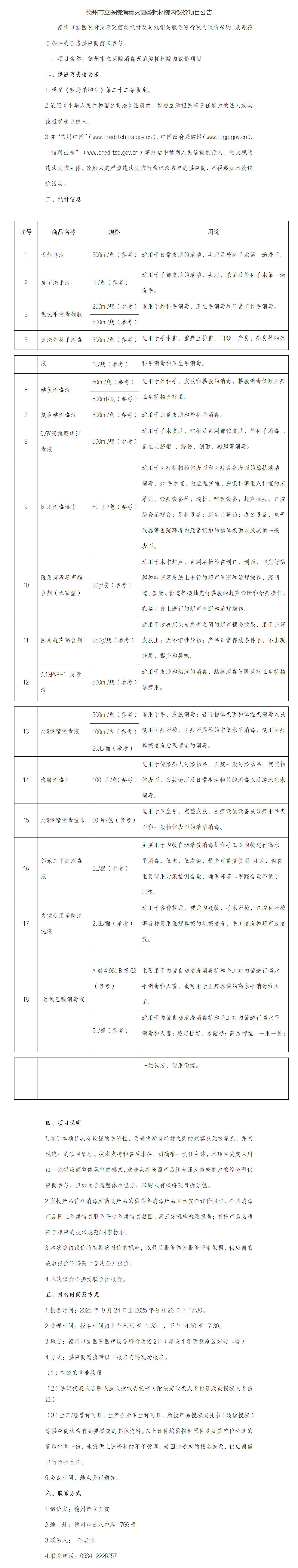 德州市立医院消毒灭菌类耗材院内议价项目公告